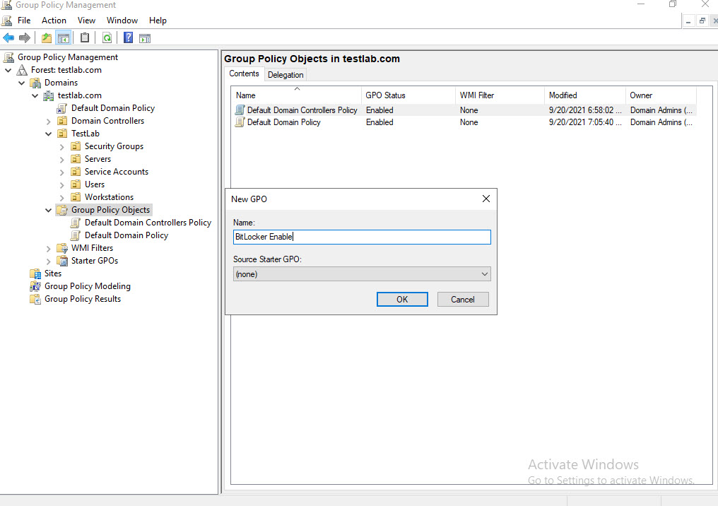 In this post we enabled the BitLocker tab in Active Directory, Created a Group Policy Object to allow Bitlocker to save in Active Directory and the last step was to run a Powershell script to turn on Bitlocker and save the recovery key to AD.